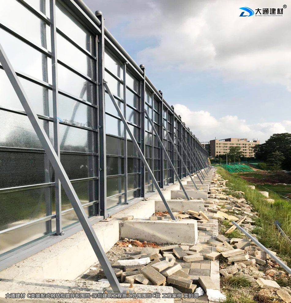 深圳市大通建材生產(chǎn)的C類裝配式鍍鋅鋼結(jié)構(gòu)圍擋4米高定制款,把深圳市龍華區(qū)建筑工程施工現(xiàn)場(chǎng)圍起來,為施工安全保駕護(hù)航。